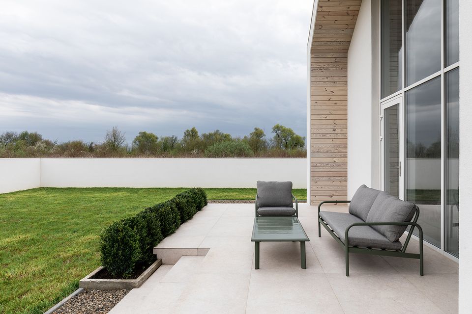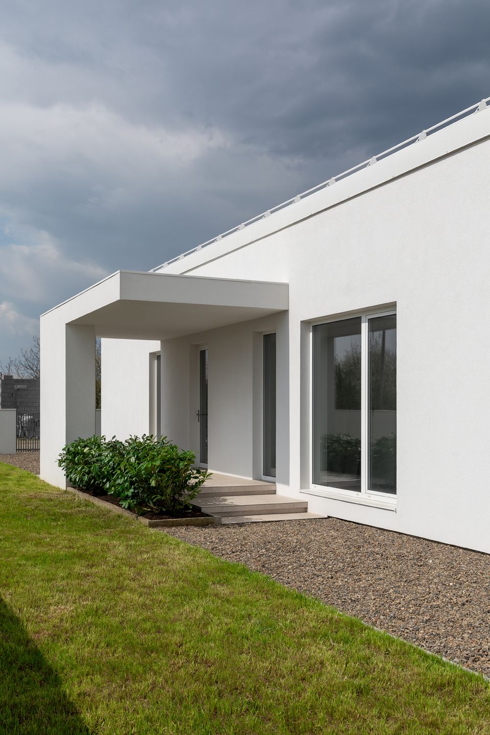 Ділянка витягнутої форми на момент проєктування залишалася відкритою з обох боків. Така свобода водночас стала викликом: архітекторам потрібно було закласти приватність наперед — незалежно від того, як зміниться оточення з часом. Відповіддю стала інтровертна логіка простору. Будинок не відкривається назовні, а концентрується на внутрішньому дворі, формуючи захищене середовище. Це рішення створює відчуття стабільності — навіть у змінному контексті.