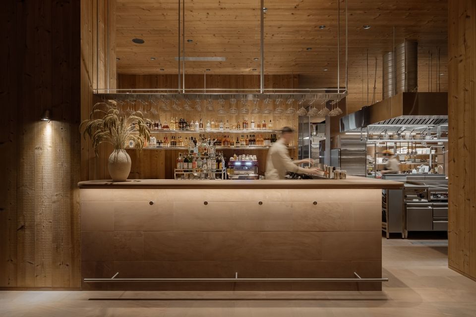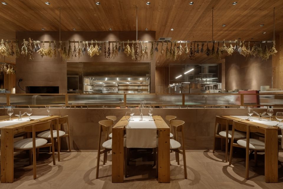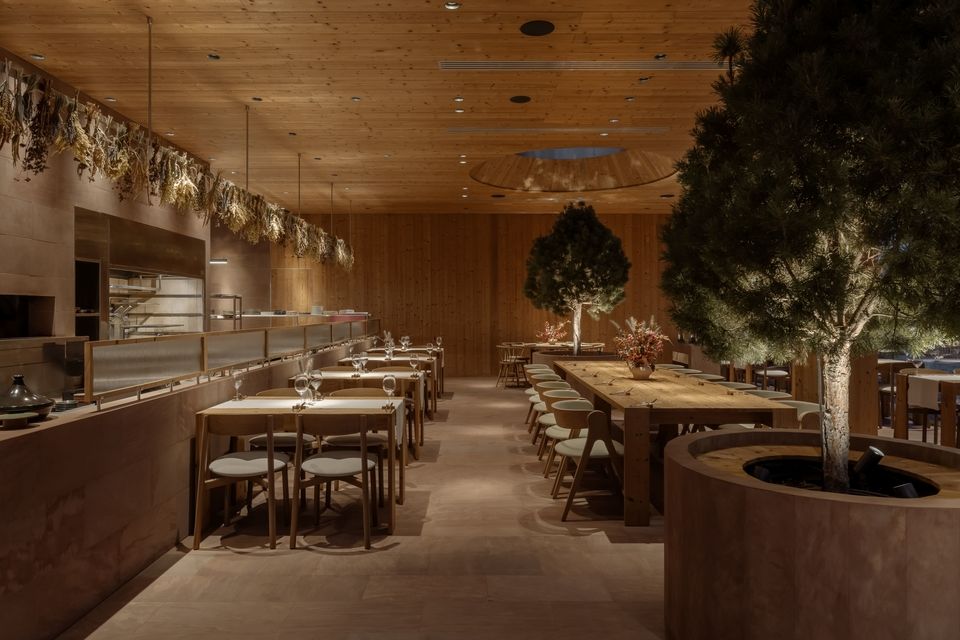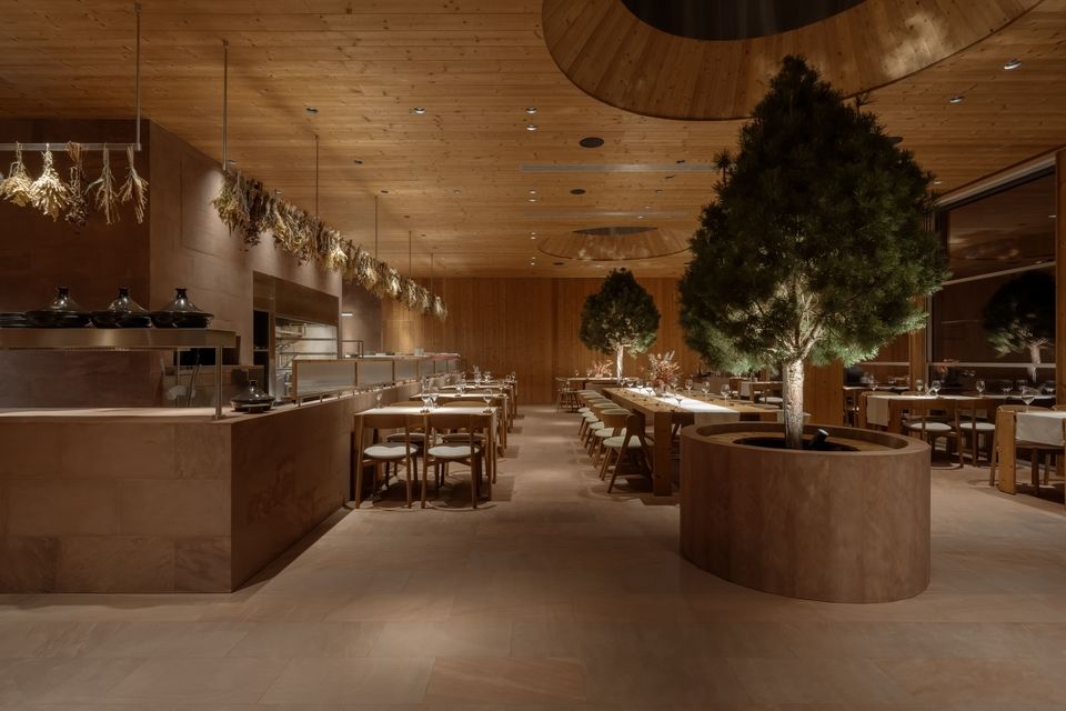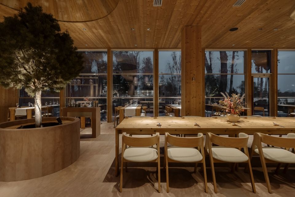 Розташований безпосередньо біля води, простір площею 753 м² поєднує гастрономічну філософію монокухні з архітектурою, що не намагається домінувати над ландшафтом, а м’яко в нього вбудовується. Меню ресторану базується на рибі з власних озер Seven Lakes і сезонній фермерській продукції, формуючи концепцію «чесного смаку» — простого, чистого та глибоко пов’язаного з локальним контекстом.