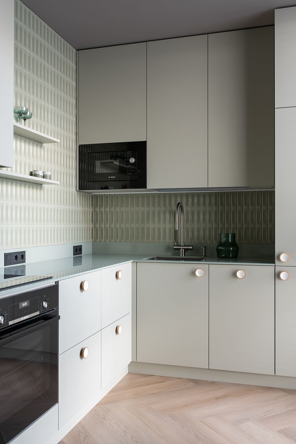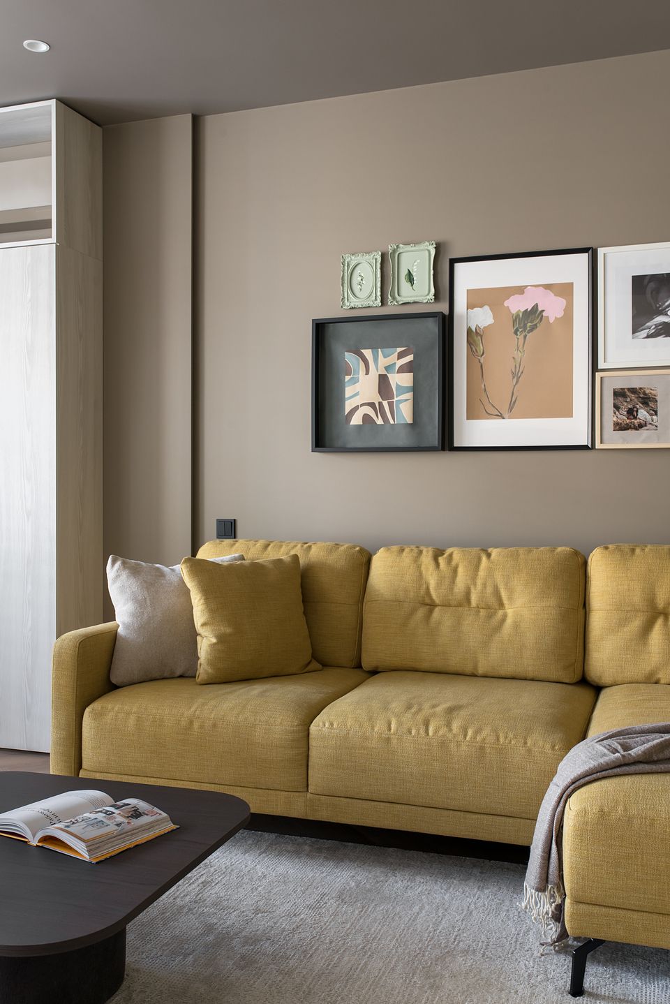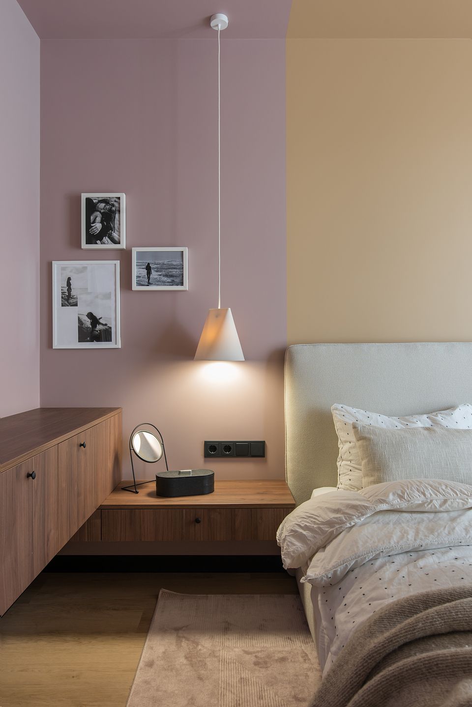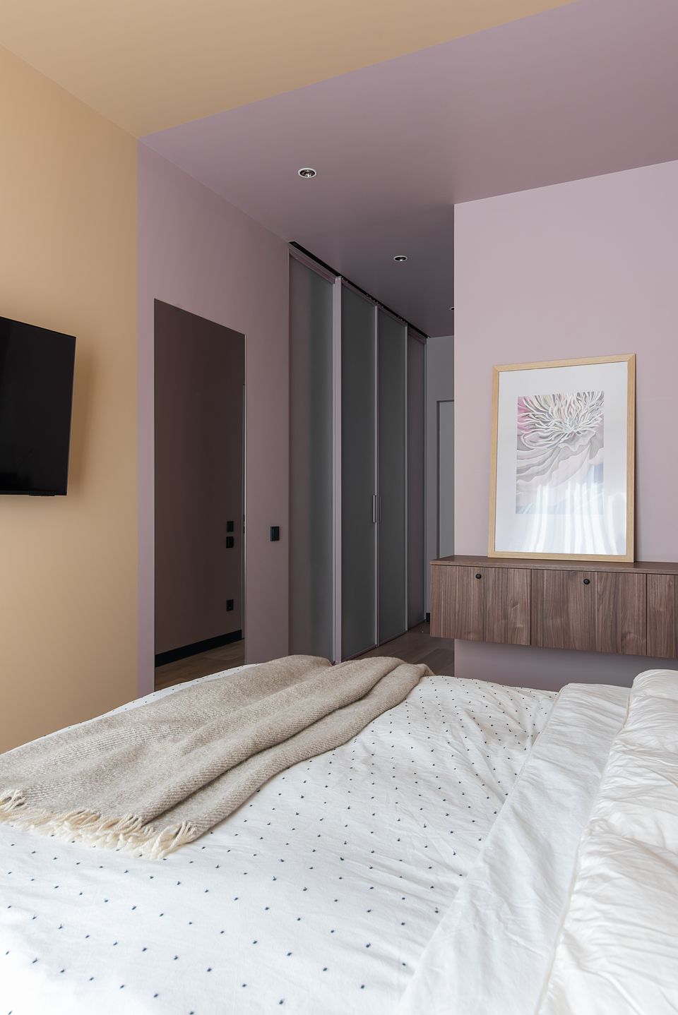 Замовниця — молода, відкрита, оптимістична жінка, мама маленького хлопчика. Її життєва енергія й романтичність відчуваються в кожному відтінку простору. Романтичність — у делікатному рожевому, що перегукується з гірчичним у спальні. Глибина — у хамелеонному бежево-сірому тоні вітальні, який змінюється залежно від світла й погоди. Неординарність — у салатових акцентах і геометрії плитки. Разом вони створюють рівновагу затишку й сили, м’якої естетики та впевненого характеру.