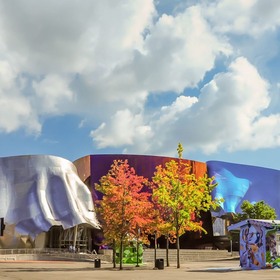 Кольорові металеві «хвилі» поруч зі Space Needle у Сіетлі — приклад короткотривалого флірту Ґері з блобітектурою. Музей зберігає найбільшу колекцію артефактів Джимі Гендрікса.