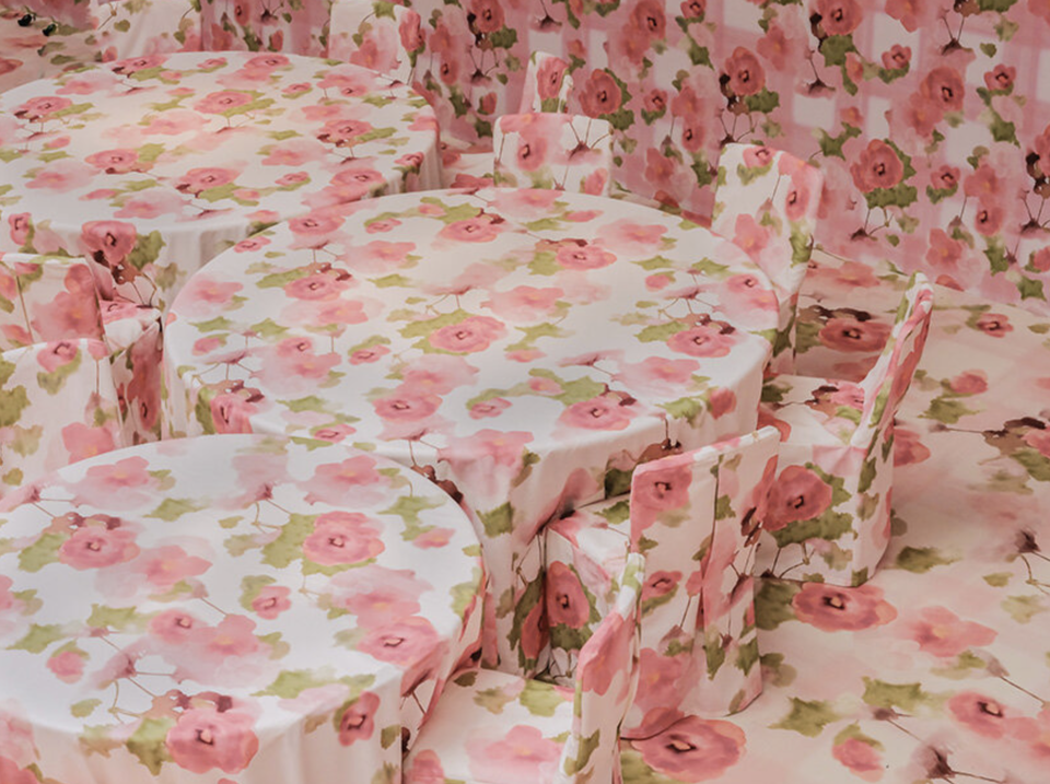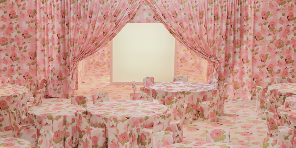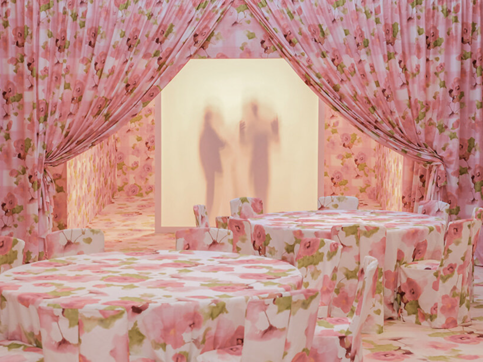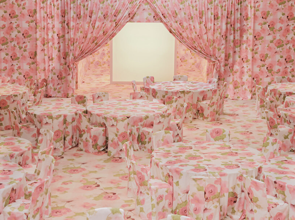 Простір, що на один тиждень оселився в колишній автомайстерні, перетворився на інтимний спікізі, огорнутий рожевим текстилем, натхненним пелюстками Rose d’Ispahan — квітки, яка уособлює естетику ніжності, чуттєвості й сили водночас.