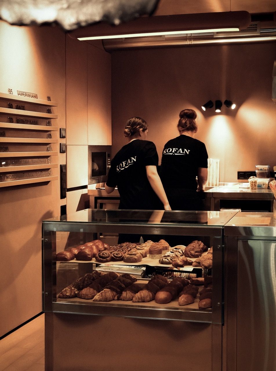 KOFAN — це кав’ярня третьої хвилі в центрі Кременчука, спроєктована як простір паузи. Тут увага не розсіюється, а концентрується — на смаку кави, розмові або власному стані. Вже на підході до закладу цей настрій задає скульптура капучинового чоловічка у сквері навпроти, яка працює як м’який візуальний знак і продовжується на вході, де подібний персонаж зустрічає відвідувачів біля дверей.