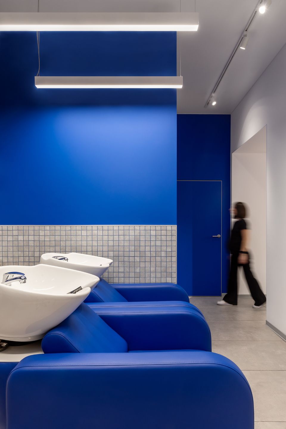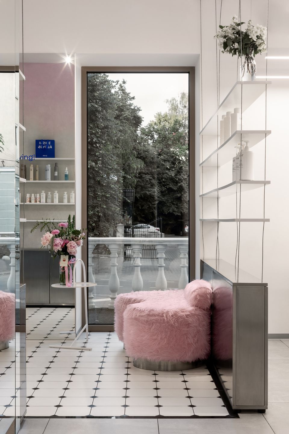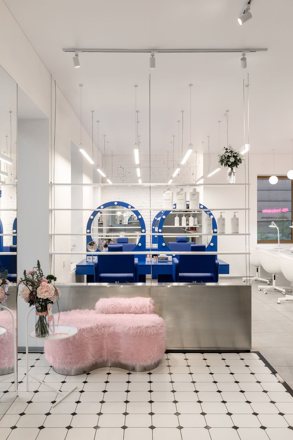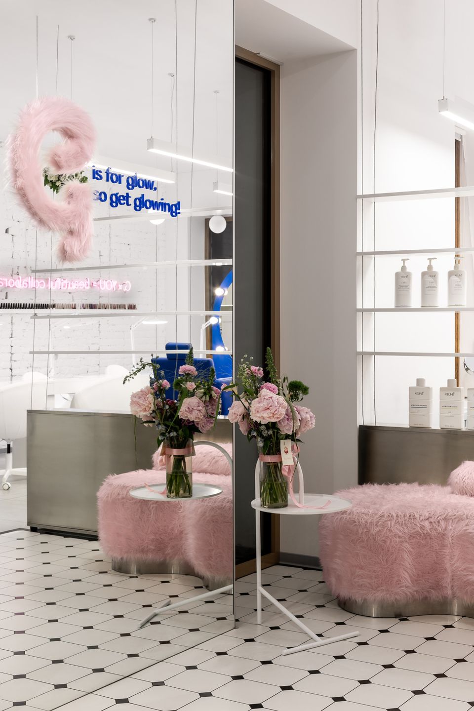 Новий G×BAR, розроблений студією HVYLYA interior design, розташований у центрі Тернополя на площі 82 м². У просторі продумано організовані робочі зони: станції для волосся і нігтів розміщені біля вікон, що додає атмосфері динаміки, а зони для педикюру та миття голови знаходяться далі, забезпечуючи необхідну приватність.