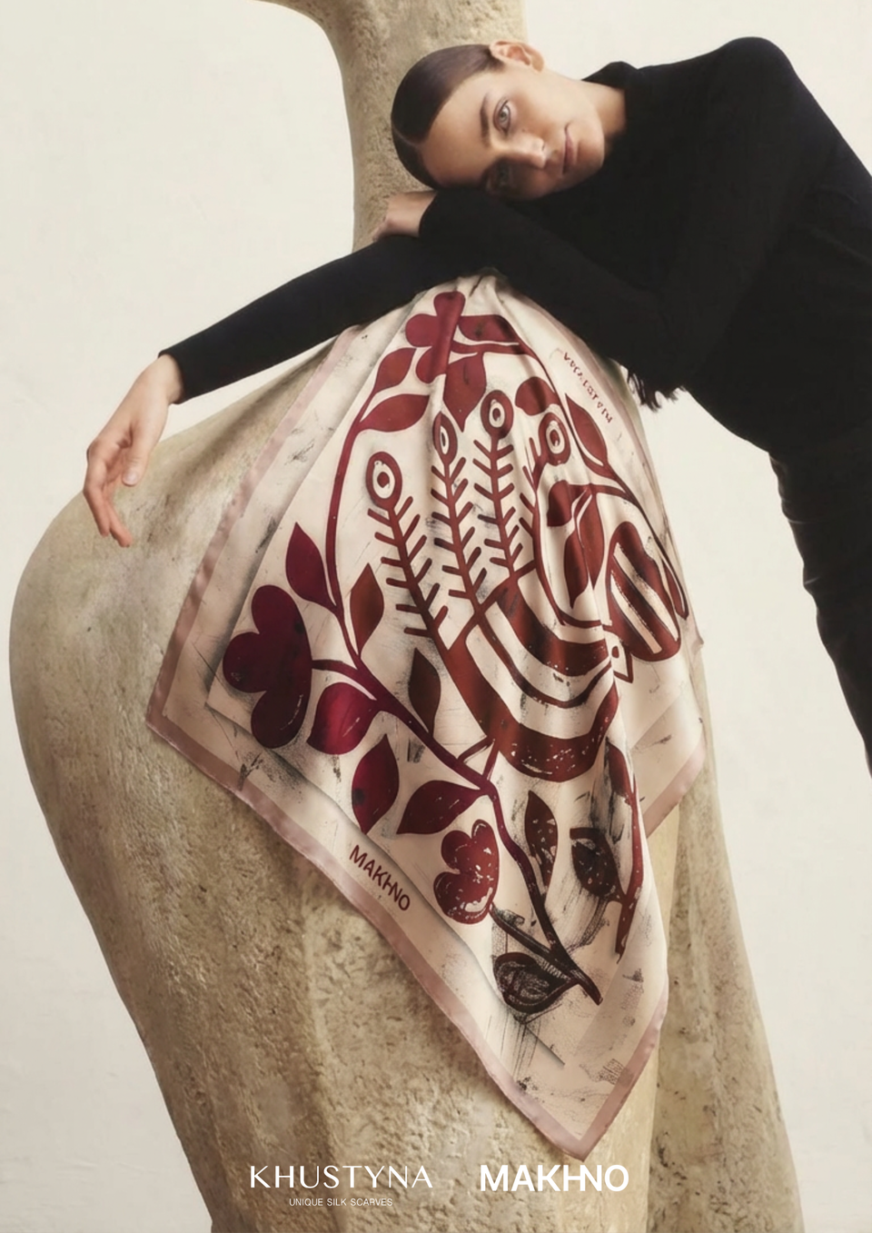 MAKHNO та KHUSTYNA презентують колекцію шовкових хустин «ЖИВІ» за архівними ескізами Сергія Махна