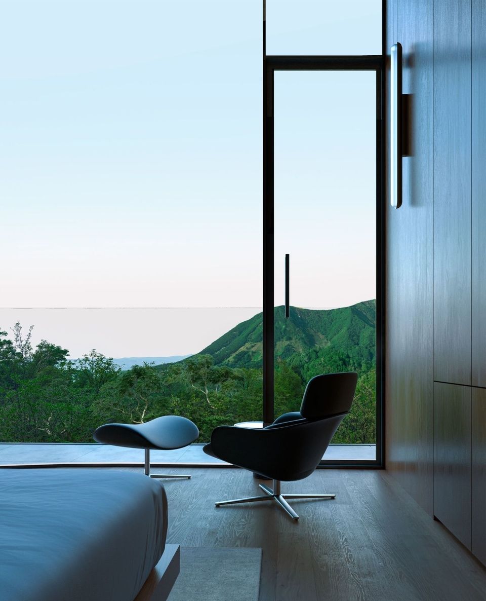 Тут архітектура не відділена від природи, а стає її продовженням. Великі вікна, скляні фасади й тактильні матеріали забезпечують прозорість між внутрішнім і зовнішнім світом.