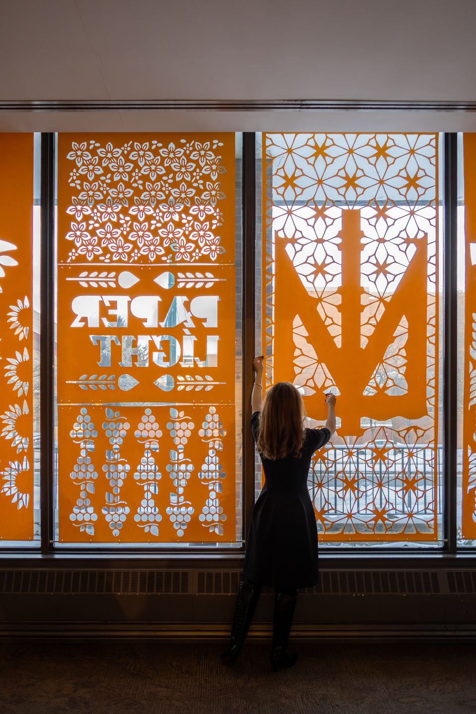Наприкінці січня вікна St. Volodymyr Institute ожили завдяки 36,6 м² паперу, вирізаного вручну. Paper Light: Contemporary Vytynanka — це сучасна інсталяція, де традиційна українська витинанка зустрічається з сучасним дизайном, а простір і глядач стають учасниками живої взаємодії світла, тіні та форми.