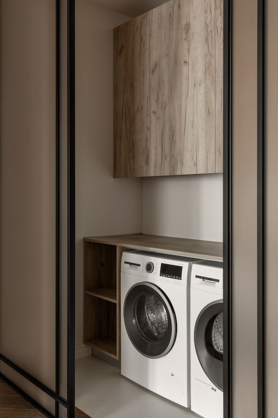 Проєкт наповнений рішеннями, які залишаються «за кадром», але формують якість життя. Зокрема, кухонна витяжка: стандартну технічну модель інтегрували в спеціально спроєктований короб під фарбування. Це дозволило зберегти функціональність, приховати техніку й підтримати чистоту архітектури.