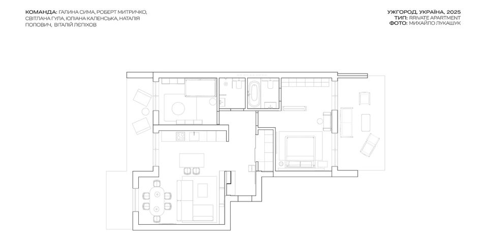 Проєкт PARKLAND — реалізована квартира в Ужгороді, де інтер’єрна архітектура вибудувана не навколо декору, а навколо сценаріїв повсякденного життя. Команда MYTRYCHKOSYMA створила простір як спокійне, тепле середовище, у якому ключову роль відіграють тактильність матеріалів, робота зі світлом та продумана ергономіка — рішення, актуальні поза часовими трендами.