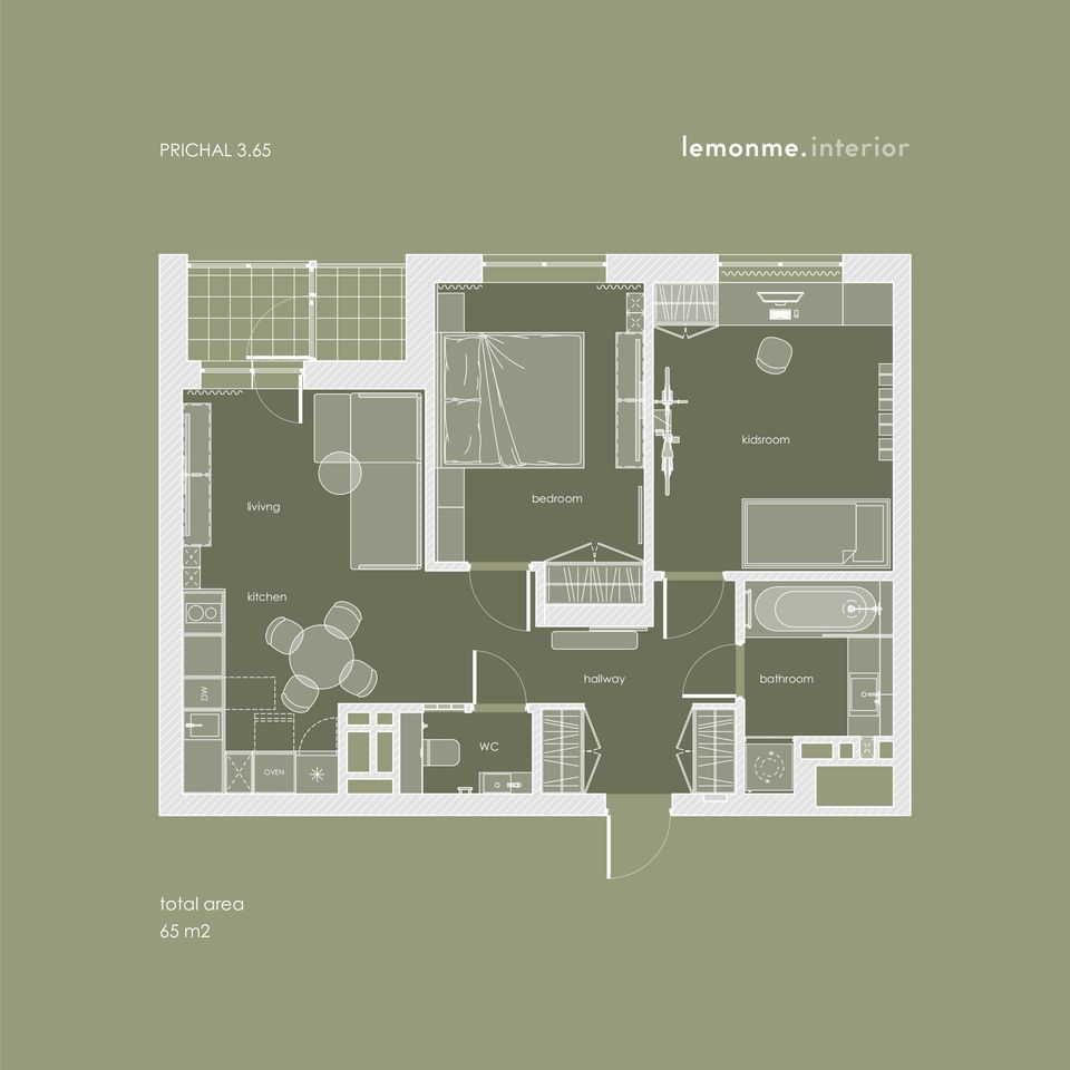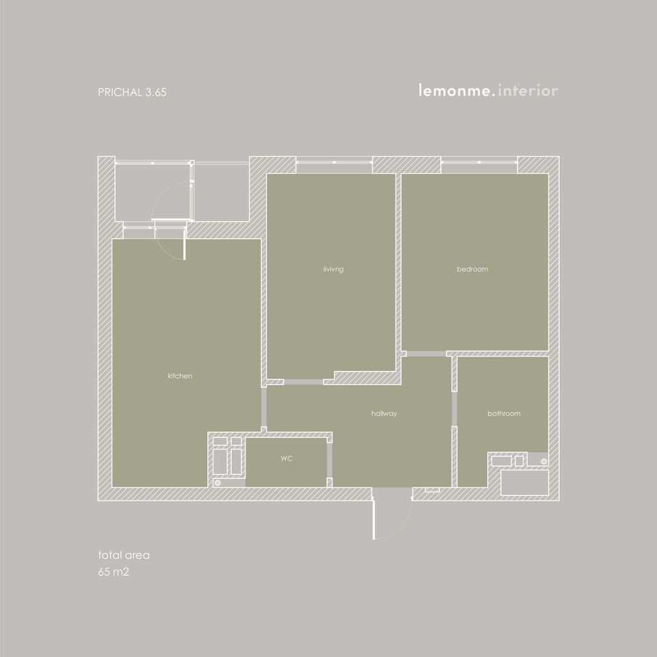 PRICHAL 3.65 — це квартира площею 65 м² у Києві, де функціональність поєднується зі спокійною, вивіреною естетикою. Над проєктом працювала над проєктом працювала Марія Сохацька Lemonme Interior. У цьому інтер’єрі немає демонстративних жестів — лише продумана структура, світло й матеріал. Простір побудований навколо логічної осі руху: від кухні-вітальні до приватних кімнат. Перехід між зонами відбувається плавно, без різких контрастів, зберігаючи відчуття цілісності й внутрішнього порядку.