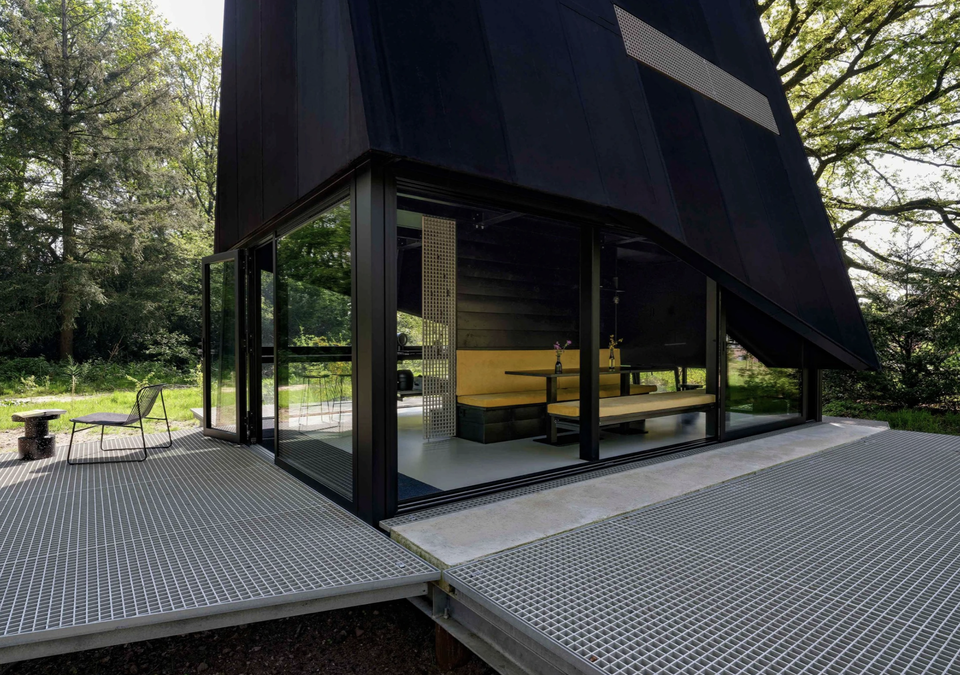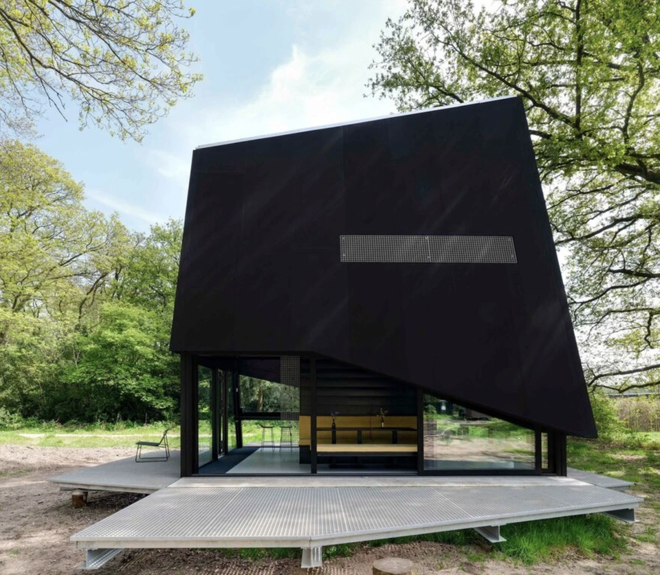 На околиці національного парку De Hoge Veluwe, у районі Buitenplaats Koningsweg, реалізовано експериментальний будинок для відпочинку Stay Under the Radar. Проєкт розробили нідерландські архітектори з бюро Sander van Schaik та Robert-Jan de Kort Architectuur.