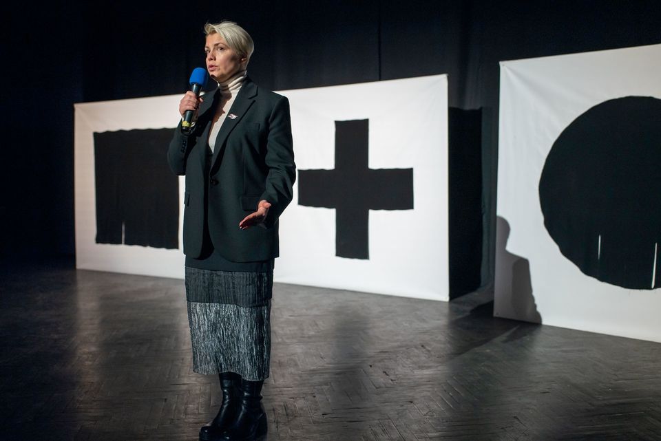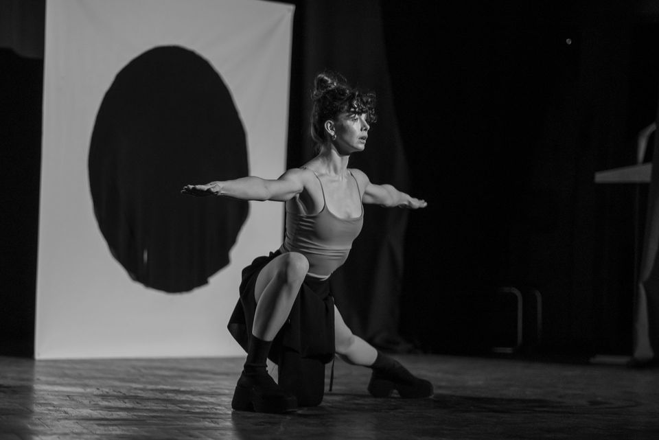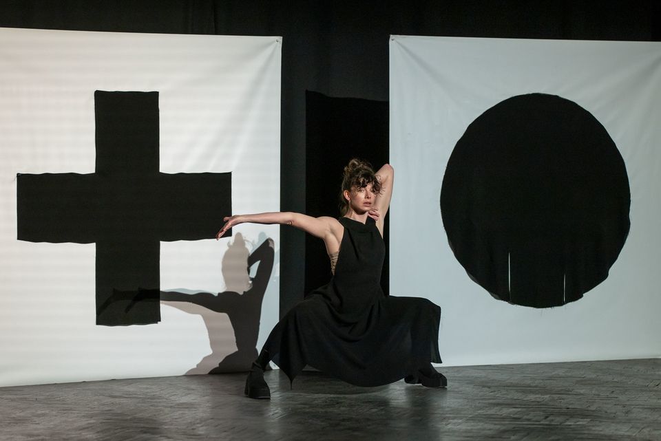У перформансі три супрематичні символи — «Чорний квадрат», «Чорне коло» та «Чорний хрест» — стали костюмами для танцівниці. Через contemporary-пластику вона відтворила кожну форму у русі, перетворивши геометричну абстракцію на жест і тілесний досвід.
