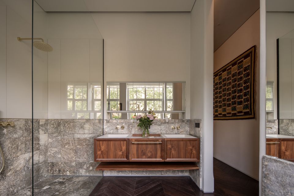 Водночас будинок довелося суттєво перезібрати функціонально. Перший поверх став відкритішим — з’явився просторий хол, кухня і нова вітальня-їдальня, яка через великі вікна виходить у сад. Анфіладну структуру зберегли, але адаптували до сучасного життя. Нижній рівень зробили повноцінно житловим, відкривши його до світла, а верхній — перетворили на приватну зону зі спальнями.